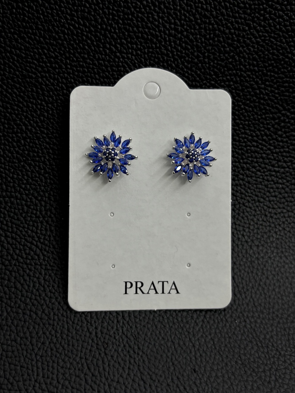 Brinco Prata 925 Flor Navete com Zircônias Azuis – Elegância que Floresce